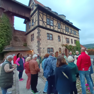 Da müssen wir wieder einmal einen Auffrischungskurs machen. So kam es, dass wir wieder einmal nach Schlitz fuhren. Eine Führung in der Schlitzer Destillerie und/oder mit dem Stadtwächter Hagen eine Führung durch Schlitz Stand auf dem Programm. Zeitlich war alles so geplant, dass jeder alle Optionen hatte. Nachdem mit dem Brunch am Bus, mit Vogelsberger Wurst, Käse, Rohkost, Kaffee und Kuchen, eine gute Grundlage gelegt wurde, starteten wir ins Schlitzer Abenteuer. In der Destille wurde zunächst einmal theoretisches Wissen über das Brennen vermittelt, danach gab es Gelegenheit im Verkostungsraum alle Schnäpse und Liköre zu probieren. Eine kleine Gruppe, die sich die Destillerie sparte, ging mit dem Stadtwächter Hagen durch die Stadt. Mit einem kleinen Schnappsgläschen ausgestattet, konnten wir mit Hagen vieles über die Stadt und über Hagens Jugend und den Umgang mit Schnaps und Bier im Mittelalter bis Heute lernen. Nach erfolgreich abgeschlossener Stadtführung fuhren wir wieder mit dem Bus in Richtung Heimat. Zwischen Hosenfeld und Neuhof kehrten wir ein in der Sieberts-Mühle, wo wir bei super leckerem Abendessen den Tag ausklingen ließen.